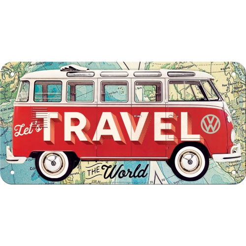 VW Bulli Let's Travel Retro Metalen Hangbord
